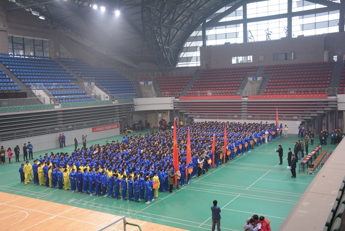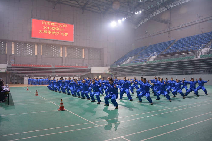 12月22日下午,由体育学院、太极拳学院、体育运动委员会办公室、体育场馆中心联合主办的河南理工大学首届新生太极拳教学比赛在我校体育馆举行,来自全校19个学院的1000余名一年级在校大学生参加了此次比赛。教务处及承办比赛的各单位部门负责人参加了比赛开幕式和颁奖仪式。