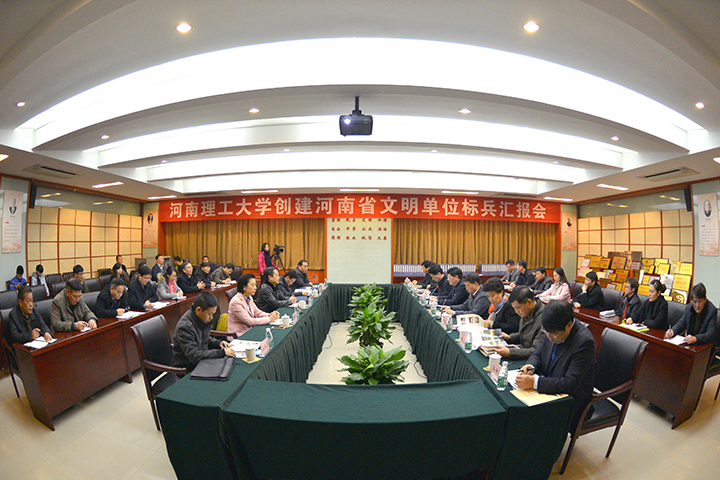11月23日,河南省文明单位标兵考评验收专家组莅临学校,对我校精神文明创建工作进行实地考评。学校在明德楼一楼会议室举行汇报会。考评验收专家组组长、河南省文明办副主任李文良,专家组成员王伟、张爱华、王保杰、郑亚丁,我校党政领导邹友峰、杨小林、周志远、卫中玲、张锟、赵俊伟、翟传森,校长助理孟钟剑出席汇报会,校文明办成员单位负责同志参加汇报会。汇报会由校长杨小林主持。