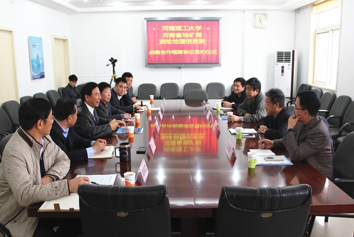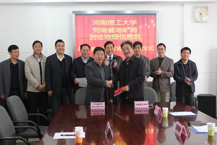 我校与河南省地矿局测绘地理信息院战略合作协议是强化双方务实合作,开创共赢发展新局面的一项重要举措。禄丰年代表省地矿局对周英一行的到访表示热烈欢迎,对战略合作框架协议的签订表示衷心祝贺。他指出,本次协议的签订是双方友好合作的开端。希望双方通过这个平台在人才培养、科研创新、项目申报等方面开展更广泛深入的合作,同时不断完善合作机制,把本次合作办成强强联合、校院联合的典范。