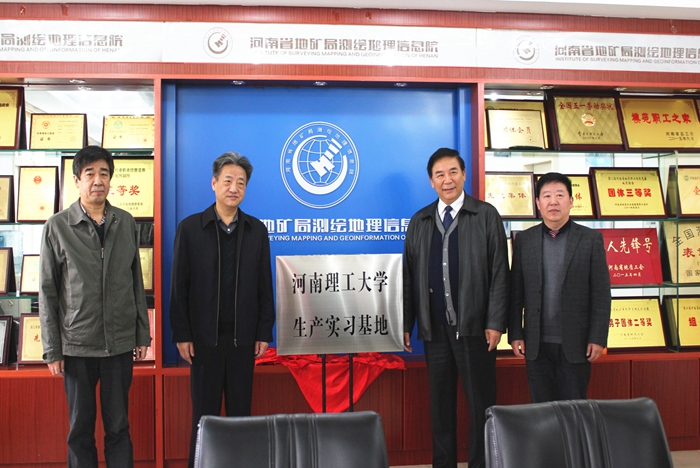 在战略合作框架协议签约仪式上,河南省地矿局测绘地理信息院与我校测绘与国土信息工程学院同时签订了校企联合培养协议,并共同为我校生产实习基地揭牌。