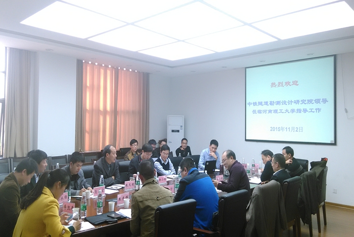 11月2日下午,中铁隧道勘测设计研究院党委书记兼院长卓越、副院长李治国、结构工程研究所所长肖红渠、防水工程研究所所长邹翀、环境工程研究所所长罗占夫及科研管理部部长王光辉一行6人莅临学校考察交流。交流座谈会在土木学院二楼会议室举行,校长杨小林出席座谈会,土木学院党委书记朱天明、院长刘希亮及科技处、土木学院、资环学院、电气学院部分负责人、教师参加交流座谈。座谈会由刘希亮主持。