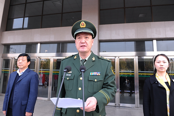 武伟代表焦作市消防支队全体官兵向关心支持消防事业的校领导和大学生朋友们表示衷心的感谢,希望广大师生重视消防问题,强化消防安全意识,营造全社会关注、参与、支持消防的良好氛围。