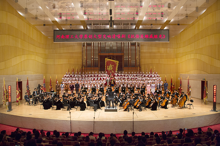 “有一座长城雄伟辉煌,那是抗倭英雄戚继光,您是中华民族的脊梁;有一座丰碑世人敬仰,那是国魂戚继光,您是民族的希望,您是国家的栋梁……”9月18日晚,伴随着河南交响乐团震撼人心的合奏和我校师生高亢嘹亮的演唱,大型交响清唱剧《抗倭英雄戚继光》在河南省艺术中心音乐厅成功首演。