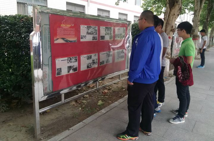 为隆重纪念中国人民抗日战争暨世界反法西斯战争胜利70周年,大力弘扬伟大的抗战精神,缅怀革命先烈,日前,我校在一号实验楼南侧和春秋大道北侧宣传橱窗举办大型主题图片展。