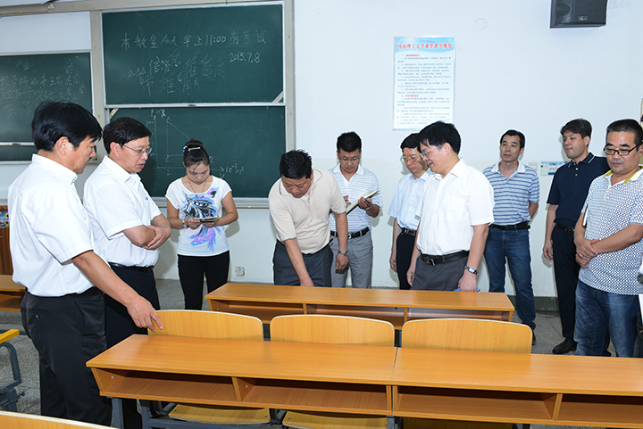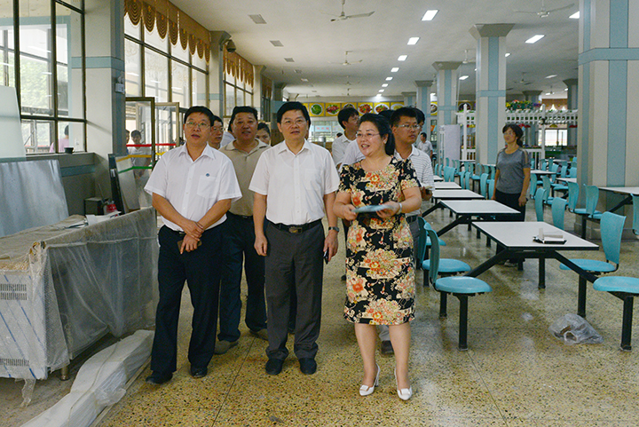 副校长张琨、景国勋、翟传森,校长助理孟钟剑一同检查,党办、校办、教务处、发规处、基建处、后勤处、保卫处、后勤集团公司负责人陪同检查。