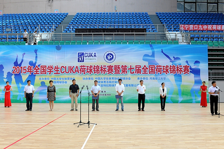 7月24日上午,2015年全国学生荷球锦标赛暨第七届全国荷球锦标赛在我校体育馆隆重开幕,共吸引来自全国21所学校的24支代表队参加比赛。本次比赛为期5天,由中国大学生体育协会、中国荷球协会主办,我校与焦作师专共同承办。