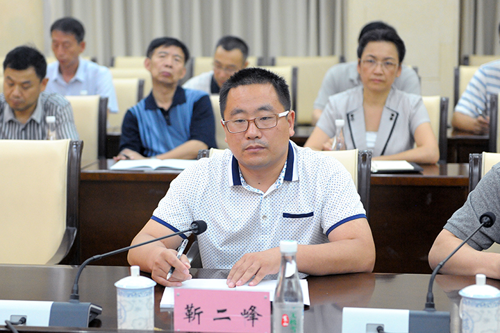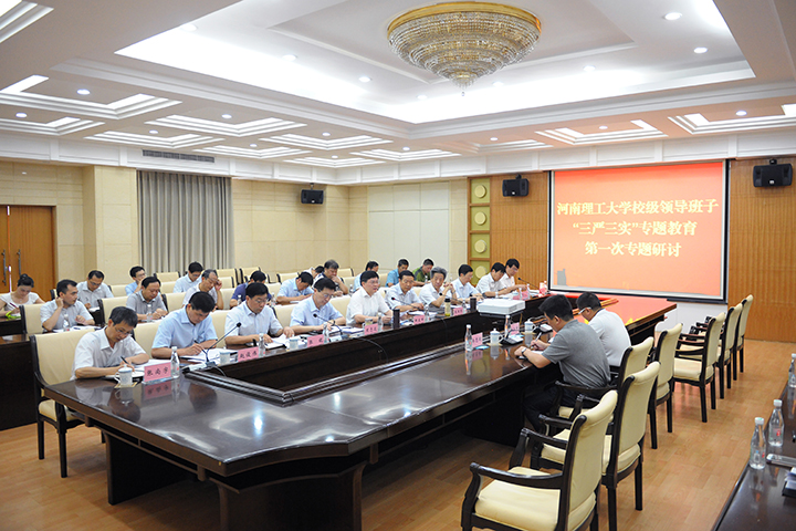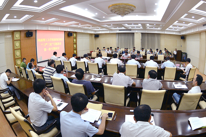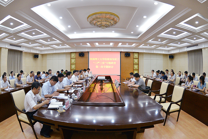 7月13日下午,学校在力行楼一楼会议室举行校级领导班子“三严三实”专题教育第一次专题研讨,研讨以“严以修身,加强党性修养,坚定理想信念,把牢思想和行动的‘总开关’”为主题。省管高校“三严三实”专题教育第四巡回检查组靳二峰、冯志毅出席研讨会,校党委书记邹友峰主持专题研讨,校领导张国臣、周志远、周英、张锟、景国勋、赵俊伟、翟传森、张尚字、孟钟剑参加专题研讨。