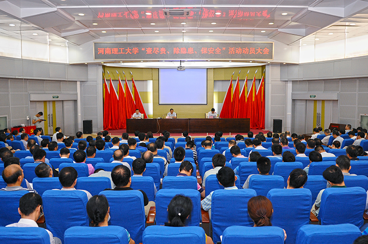 7月9日下午,学校在力行楼学术报告厅召开“查尽责、除隐患、保安全”活动动员大会,校领导邹友峰、张国臣、周志远、张锟、景国勋、翟传森、孟钟剑出席会议。会议由党委组织部部长田道敏主持。