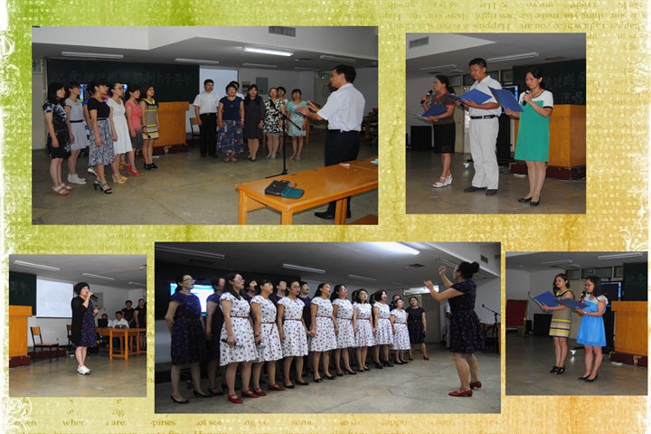 在活动正式开始之前,大家首先观看了两段有关抗日的纪实影像,再次感受了当时虽然贫弱但誓死不向日本入侵者屈服的中国人民奋勇抵抗的真实场面。之后,节目表演开始,首先登台的是鲍甬婵、吕增云等9位老师,她们为大家带来小合唱《长城谣》和《到敌人后方去》,两首经典的抗日爱国歌曲让大家一下子感受到当年全民抗战救亡的激情;随后,张如意、杨文娟等4位老师在诗歌朗诵《不能忘》中揭露了日本军国主义在中华大地无底线地进行烧杀抢掠给中国人民带来的深重灾难,表达了对侵略者的极度愤慨和牢记历史、发愤图强的豪情;田青、韩伟等5位老师带来的恬美小合唱《军港之夜》展现了和平时代人民军队海军官兵仍然在为保卫海疆而辛劳的画面;抗日战争的胜利离不开以毛泽东为主要领导人的中国共产党的领导,张辉老师演唱的歌曲《万岁毛主席》表达了人民群众对伟大领袖的崇敬与热爱;郑琳等3位老师的诗朗诵《那一年,这一年》通过抗战时期中国的凋敝、苦难与如今中国的富强、幸福的历史对比,讴歌了党带领人民所取得的伟大业绩;刘琨珊指挥、安月英等16位老师演唱的歌曲《小路》是诞生于1941年卫国战争烽火中的前苏联歌曲,优美而不柔弱,歌声中透着坚强和勇敢,给人一种向往美好、战胜困难的勇气;陈蕾、孙尚前朗诵的著名抗战诗歌《我用残损的手掌》饱含深情,蕴含着对“永恒的中国”的赞美与信心;在张艳老师为大家带来旋律优美的独唱《映山红》后,流通部李晓霞、王媛媛等20余位职工以一首气势磅礴、充满正能量、让人心情激荡的大合唱《爱我中华》将现场全体图书馆职工的爱国情绪带到高潮,为整场活动画上了圆满句号。