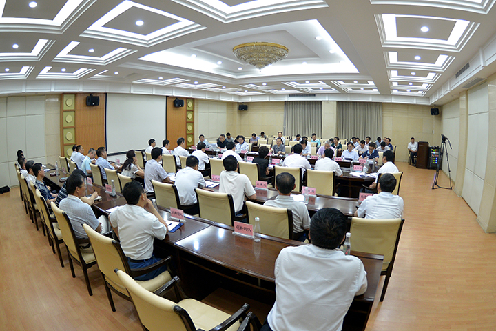在力行楼一楼会议室,杨小林代表学校作题为《适应新常态,把握新机遇,全力服务经济转型示范市和美丽焦作建设》的工作汇报,详细介绍了学校基本情况、服务地方经济社会发展情况和学校建设发展中存在的问题及建议。