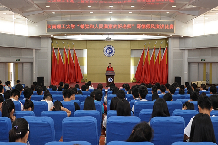 6月9日下午,我校“做党和人民满意的好老师”师德师风演讲比赛决赛在力行楼学术报告厅举行。党委宣传部部长朱雪里、人事处处长郭健卿、教务处处长沈记全、马克思主义学院院长侯菊英、工会女工委主任冯平、学生处副处长常玉光、团委副书记陈昊担任此次比赛的评委,各分工会主席、教师代表、学生代表等200多人一同观看了比赛。