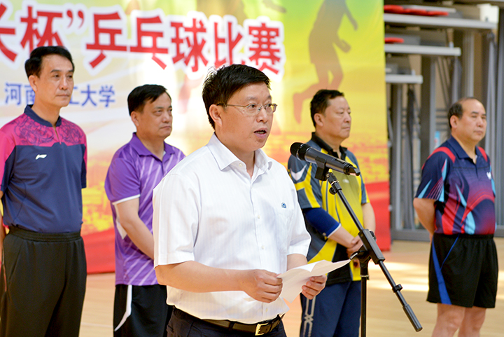 王朝军在致辞中对各参赛院校表示欢迎,向承办本次比赛并为之付出辛勤劳动的河南理工大学领导、老师和同学们致以诚挚的感谢。他指出,本届“校长杯”乒乓球比赛得到了各兄弟院校的大力支持,各位校领导的身体力行更是煤炭系统高校开展体育运动的典范。王朝军希望各参赛院校以此为契机,进一步增进彼此之间的交流和友谊,赛出风格,赛出水平。