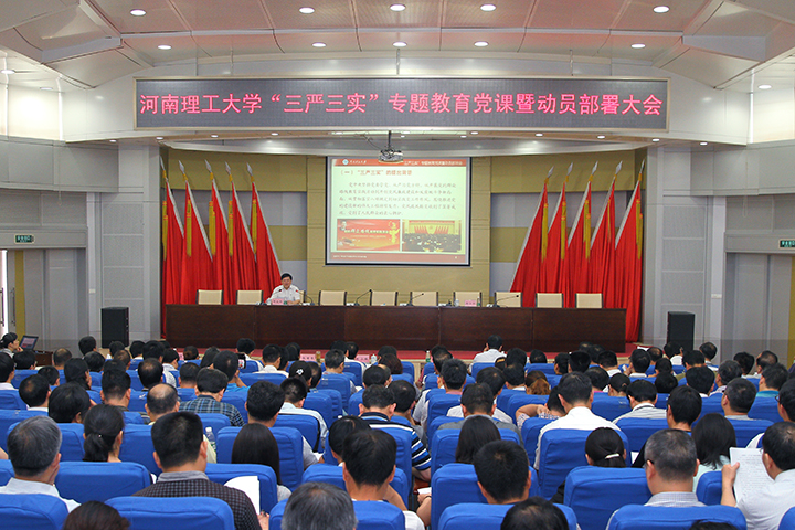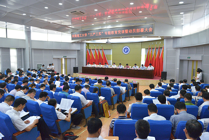 5月29日下午,按照中央和省委的统一部署,学校在力行楼学术报告厅召开“三严三实”专题教育动员大会,校党委书记邹友峰以《自觉践行“三严三实”要求,奋力加快特色鲜明高水平大学建设进程》为题,为全校处级以上干部上专题党课,并对全校“三严三实”专题教育进行动员部署。校领导杨小林、张国臣、卫中玲、周英、张锟、景国勋、赵俊伟、张尚字、孟钟剑出席会议,全校处级干部、各基层党委(党总支、直属党支部)党政办主任参加会议。会议由校长杨小林主持。