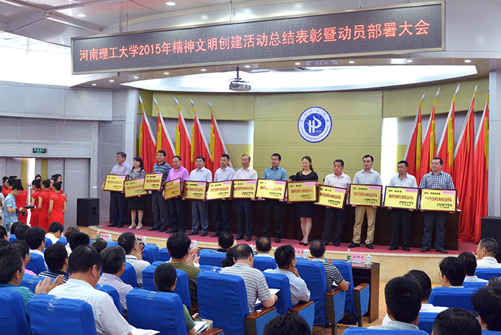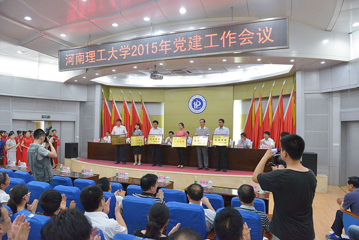5月29日下午,学校在力行楼学术报告厅召开2015年党建工作会议。校党政领导邹友峰、杨小林、张国臣、卫中玲、周英、张锟、景国勋、赵俊伟、张尚字、孟钟剑出席会议。全体处级干部、各基层党委(党总支、直属党支部)党政办主任、获奖代表等参加会议。会议由校长杨小林主持。