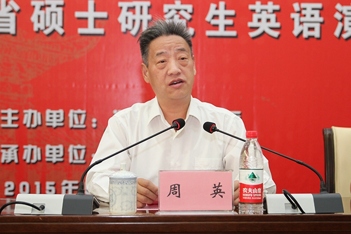 周英在致辞中简要介绍了学校的基本情况,强调当前全国正在落实习近平总书记提出的“四个全面”战略布局,研究生教育领域也正在实施全面深化改革,深化开放合作办学,这对研究生英语水平提出了更高的要求。河南省硕士研究生英语演讲比赛的举办,为各个高校研究生搭建了一个提高英语水平,展示自我、互相学习的良好平台。他希望不同高校参赛选手以此次比赛为契机,紧扣“创客”主题,交流思想,碰撞火花,共同提高,收获快乐,收获友谊。