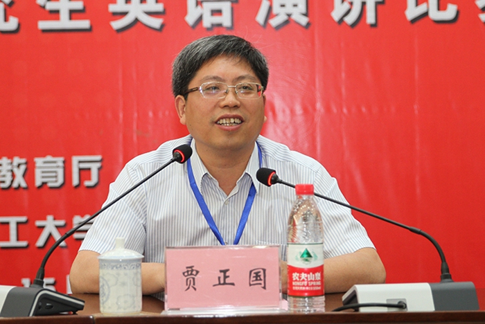 贾正国在讲话中介绍了河南省硕士研究生英语演讲比赛举办的背景,指出比赛是落实研究生教育创新计划的重要环节,是培养具有国际视野高层次创新人才的重要抓手。贾正国强调,为保证比赛的公平和水平,担任此次比赛的评委都来自非参赛高校,在7位评委中有4位为外国专家。他希望各参赛高校通过比赛,激发广大研究生学习英语的积极性,带动整个研究生队伍外语水平的提高,进而为服务河南三大国家战略培养出更多优秀人才,做出更大的贡献。