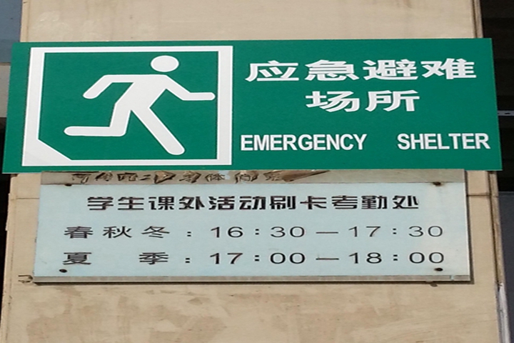 近日,我校避难场所建设规划初步完成。安全校园建设是教育部近年来力推的重要工作,避难场所建设又是安全校园建设的重要内容,省教育厅和我校党委、行政对此高度重视,副校长翟传森就此项工作专门作了安排和部署。目前12套道路标志牌和4套场地标志牌避难场所图标已全部安置到位。