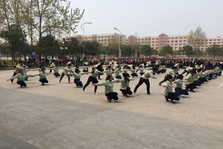 比赛现场,学生们精神饱满,在振奋人心的音乐声中尽情的舞动,动作时而优美,时而有力,处处散发着青春的活力。精彩汇演的背后凝聚着的是指导老师、教练及学生们辛勤的汗水。在日常训练中,学生们反复练习一个动作,常常训练至深夜而不叫苦不叫累,大家快乐地跳动,勇敢地翻腾,训练造成的伤痛和疲劳泯灭不了大家对胜利的渴望。他们无怨无悔的坚持着,磨练着,勾画出了校园中一道道靓丽的风景线,为校园增添一丝丝动感、一丝丝活力。