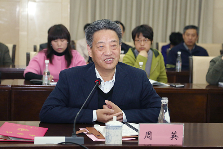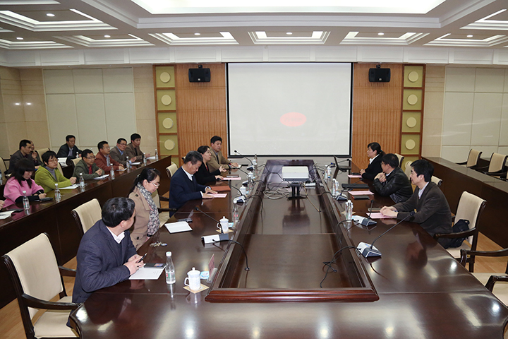 在观看学校简介片后,周英致欢迎辞,代表学校对彭斌一行的到访表示热烈欢迎。周英简要介绍了学校历史,重点介绍了我校近年来在科学研究、学科建设、著作教材的出版情况等,同时对科学出版社这些年来为我校出版了多部著作表示感谢,希望今后双方进一步加强合作,多出书、出好书,促进学校高水平科研成果的传播。