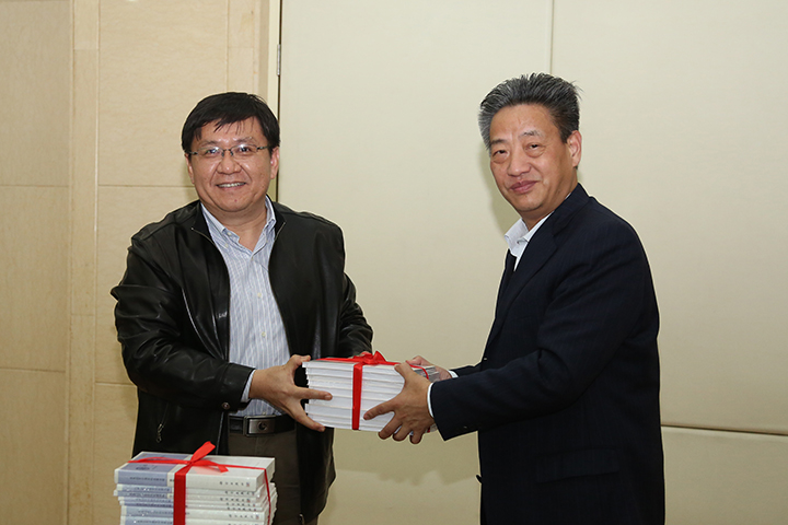 彭斌代表中国科技出版传媒股份有限公司向我校赠送《未来十年中国学科发展战略丛书》等一批图书,共计325册、码洋2.4万元。