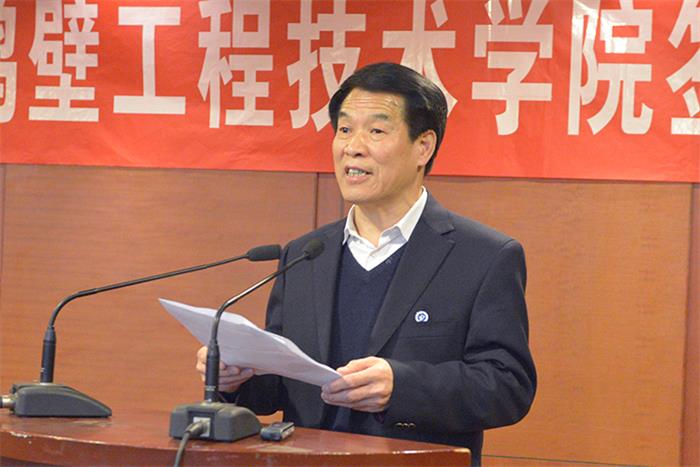 王少安在致辞时强调,合作举办河南理工大学鹤壁工程技术学院,翻开了鹤壁市本科高等教育发展的崭新篇章,充分体现了鹤壁市委、市政府发展高等教育的高瞻远瞩和对河南理工大学的特别信任。河南理工大学是我国第一所矿业高等学府和河南建立最早的高等学校,在一个多世纪的办学历程中,为国家能源工业和河南经济社会发展做出了独特贡献。长期以来,河南理工大学与鹤壁市建立了紧密的合作关系。今天双方合作举办河南理工大学鹤壁工程技术学院协议的签署,是鹤壁本科高等教育的开端,更是鹤壁市委、市政府打造生态之城、活力之城、幸福之城的重要战略布局。河南理工大学将高度重视,全面履行协议,在地方党委政府的正确领导下,努力把工程技术学院办出特色、办出水平,为推动鹤壁经济社会发展培养对口、实用和留得住的高素质应用型技术人才,共同将工程技术学院打造成我省应用技术型人才培养的新高地。