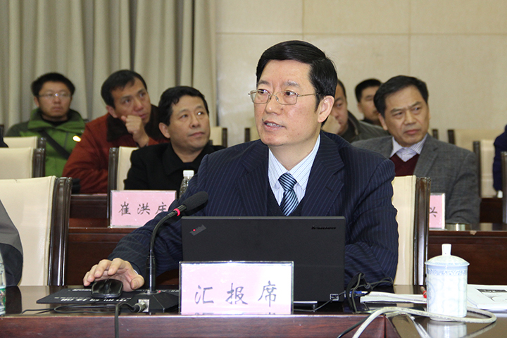 接着,孙金锋传达了省教育厅对此次省级协同创新中心中期检查的总体要求和工作部署,并简要介绍了本次省级协同创新中心中期检查的目的、意义。随后,景国勋从中心基本概况、体制机制创新、目标任务完成情况等3个方面向专家组做了详细汇报,并现场解答了专家组质询。