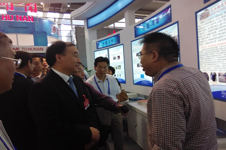 开幕式当天,徐济超来到河南展区,视察了我校展出成果,我校参会人员向他做了讲解。徐济超对航空摄影技术装备、矿山安全技术产品尤其关注。他询问说,资源能源领域的高技术是你校的强项,转化了没有?风投、种子基金这些进入了吗?当听到我校有望在河南理工大学科技园转化这些成果,希望投资基金介入时,他说省里一定大力支持,好好转化,提升行业安全水平。北京海鹰航空通用装备有限公司等企业对我校技术产品表示出浓厚兴趣,希望进一步接洽。