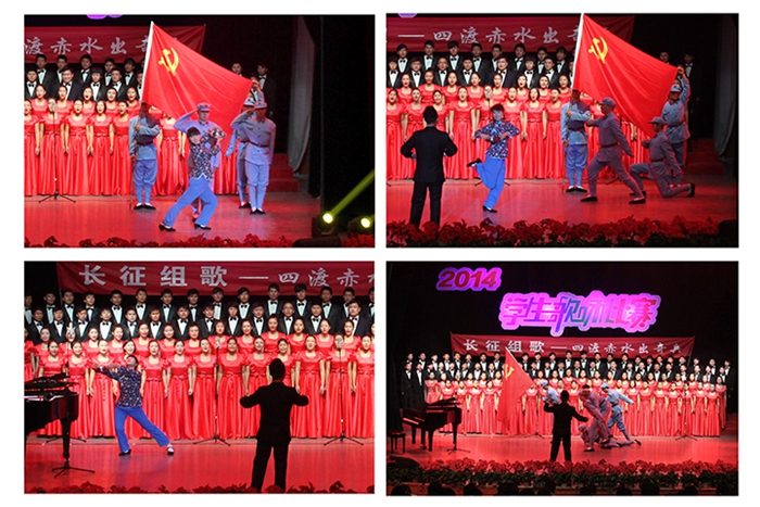 决赛现场,经过初、复赛选拔产生的20支优秀参赛队和音乐学院表演队依次上场。比赛在机械学院豪迈奋进的校歌声中拉开序幕,歌曲展现了理工学子的历史责任感和敢为人先的精神风貌,尽显“明德任责”“好学力行”的校训校风。测绘学院参赛队演唱的《黄河船夫曲》苍劲豪迈,以质朴的语言、粗犷的声调、高亢浪漫的激情,展现了不屈不挠的奋斗精神和乐观向上的精神风貌。安全学院参赛队伍演唱的《我是一个兵》别出新意,嘹亮的声音配合独特的动作,唱出了心中的激情;经管学院参赛队演唱的《让我们荡起双桨》声情并茂,加上创意多变的舞台形式,展现出无限魅力;设计学院参赛队演唱的《青春舞曲》活泼轻灵,唱出了当代大学生激情四射的青春;电气学院参赛队演唱的《当祖国召唤你的时候》声音铿锵有力,展现出铁血男儿有情有义的侠肝义胆,抒发了中华儿女对祖国母亲的热爱和忠诚。最后,音乐学院演绎的表演曲目《龙的传人》《掀起你的盖头来》为决赛画上了圆满的句号。
