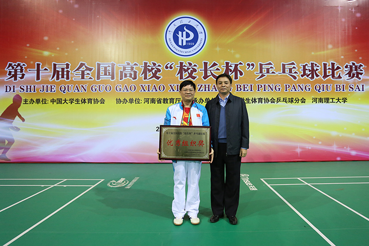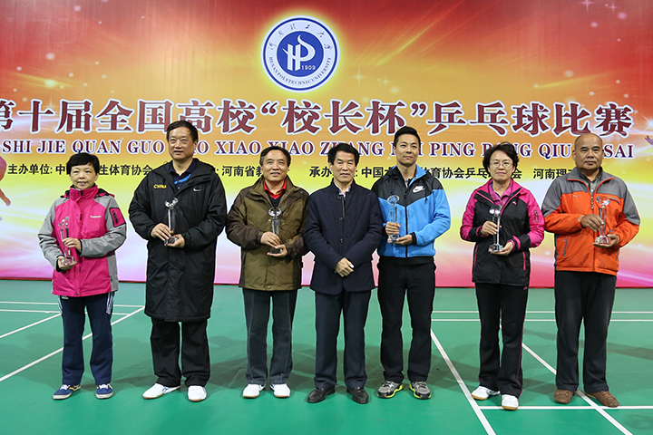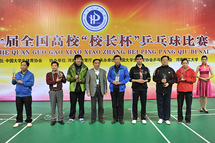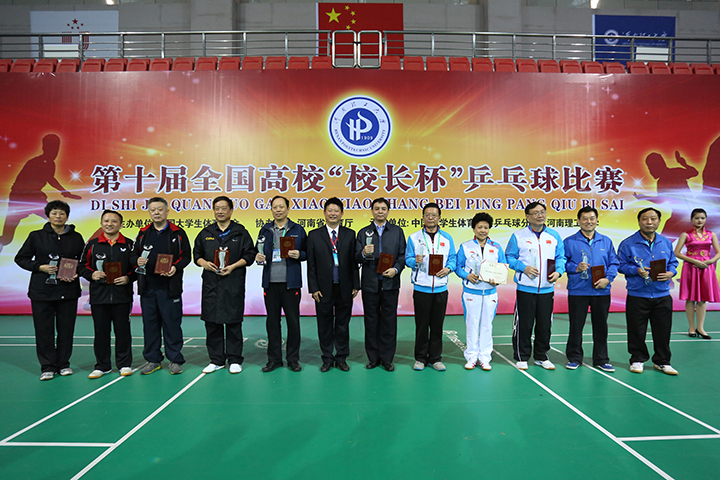 河南一队荣获本次比赛第一名,江苏队、广东队分获二、三名,我校荣获优秀组织奖。本届比赛为参加10届“校长杯”的全体运动员特设“中国高校乒乓球运动贡献奖”,我校卫中玲等12名运动员获此奖项;为参加10届“校长杯”并荣获前三名的代表队特设“中国高校乒乓球运动突出贡献奖”,河南省教育厅等6省、市代表队获此殊荣。