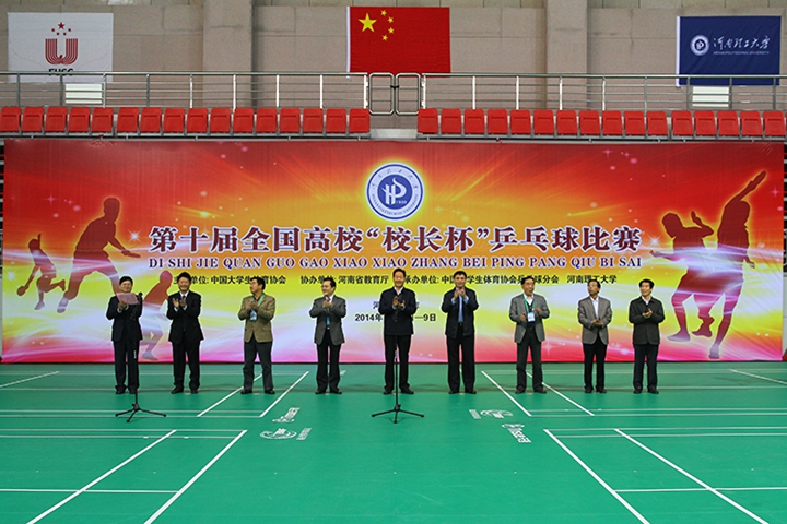 小球旋转汇集乒乓高手,百年理工喜迎高教精英。11月8日上午,第十届全国高校“校长杯”乒乓球赛在我校体育馆隆重开幕。此次比赛由全国大学生体育协会主办,河南省教育厅协办,中国大学生体育协会兵乓球分会和我校共同承办,这也是全国“校长杯”首次来到河南。来自全国21个省、市、自治区的300余名领队、运动员、教练员、裁判员参加开幕式。
