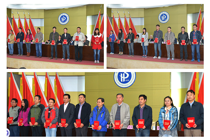在庄严的国歌声中,大会拉开了序幕。教务处处长赵俊伟、科技处处长张国成、研究生处副处长张光胜分别宣读了“金属材料及加工工程学科发展基金”研究生奖学金、优秀论著和资助科研项目表彰的决定。在一片欢乐的气氛中,傅恒志以及主席台上的领导为获奖师生颁发了荣誉证书和《习近平谈治国理政》一书。