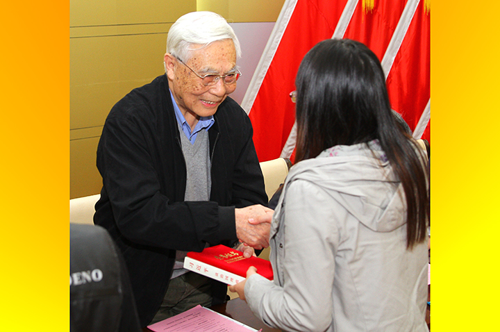 学校教授、中国工程院院士傅恒志为获奖师生颁奖