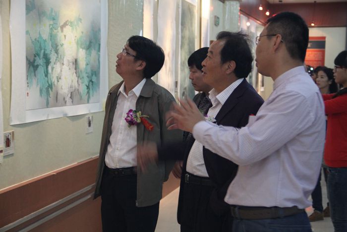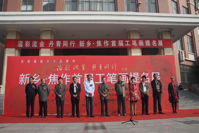 10月23日上午,由河南省美术家协会中国工笔画艺委会、焦作市文联、焦作市美协、新乡市文联、新乡市美协主办,焦作市工笔画研究会、新乡市工笔画艺委会、我校建筑与艺术设计学院联合承办的“溢彩流金,丹青同行”——庆祝建国65周年新乡·焦作首届中国工笔画提名展在我校明德楼举行,焦作市委宣传部副部长张少波,新乡市文联党组副书记王京书,焦作市文联主席庞红,新乡市文联副主席、秘书长牛永海,焦作市美协主席钟华友,新乡市美协主席杨淼,我校校工会主席、校视觉艺术研究中心主任杨建堂,建筑与艺术设计学院院长陈兴义等参加开幕式。