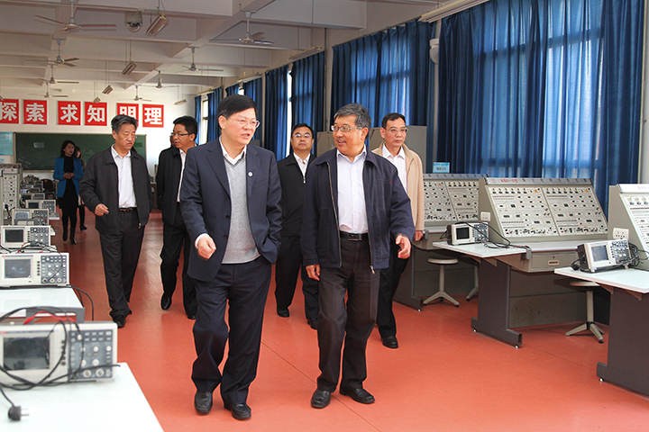 座谈交流会前,何峰一行参观了校史馆、电工电子实验教学示范中心、工程训练实验教学示范中心。