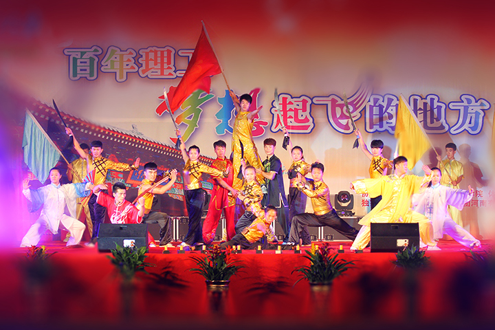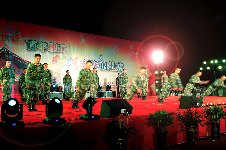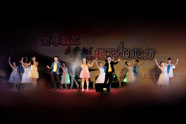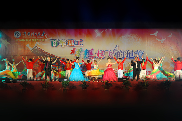 丹桂飘香喜迎八方学子,绿树摇曳共祝美好明天。9月23日,由校团委主办,市歌舞剧院、音乐学院、体育学院、武装部、老干部处及校艺术团协办的2014年迎新生联欢晚会“百年理工,梦想起飞的地方”在我校新体育场隆重举行。校长邹友峰,校党委副书记周志远,副校长卫中玲、张锟、景国勋,工会主席杨建堂,军训团团长张隆丕少校,71426部队教官、校相关职能部门的负责人,各学院领导及10000余名师生共同观看了演出。