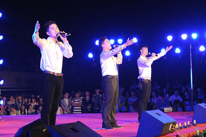 磅礴的歌声响彻天际,恢宏的舞蹈精彩纷呈。晚会在舞蹈《筑梦理工》中拉开帷幕。一曲葫芦丝合奏曲《月光下的凤尾竹》,节奏舒缓,优美缠绵,富有傣族风情,传达着对新同学真挚的欢迎与祝福。由焦作市歌剧院带来的歌舞《家乡步步高》为新老家乡献上爱的赞歌,祝愿我们的家乡未来更辉煌。健美操《爱我中华》以他们富有动感的节奏,诠释了对祖国的爱与敬佩,愿华夏民族繁荣昌盛。我省著名男高音、我校音乐学院院长李新现倾情演唱《儿行千里》,其歌情真意切,其音高亢嘹亮,现场掌声不断。由教官们带来的表演《擒敌拳》让我们看到了军人的刚毅与果敢。“弹指间,瞬息万变”的魔术受到了全场的欢呼,精湛的表演着实令人惊叹。2014级新生的联唱《最初的梦想》掀起了晚会的高潮,他们的到来为学校注入了新鲜的力量,他们也为祖国祝福,为学校献礼,为自己喝彩。校武术队带来的武术表演《谁与争锋》充分展示了理工学子激情澎湃,昂扬奋发的豪情。最后晚会在歌舞《高歌向明天》中圆满的落下帷幕。