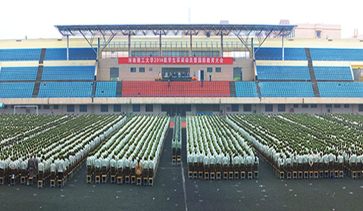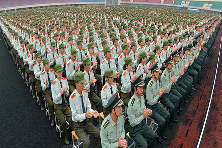 9月18日上午,我校2014级新生军训动员大会在南校区东体育场隆重举行。副校长景国勋、中国人民解放军71426部队政治部副主任王金中校、军训团团长张隆丕少校出席大会,学校军训工作领导小组成员及2014级全体新生和教官参加大会。大会由校武装部部长、后备军官学院院长芦保宏主持。