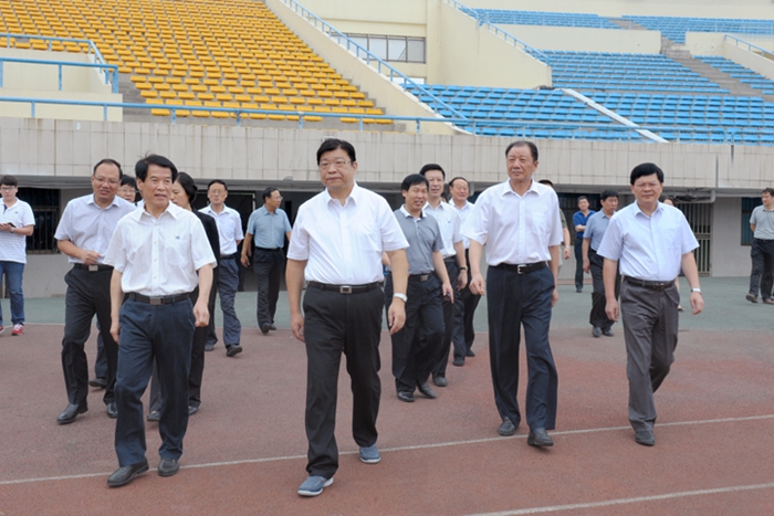 8月27日上午,河南省人民政府副省长张广智率省体育局、财政厅等部门负责人,在焦作市委书记孙立坤,市长张文深,市委常委、宣传部长甘茹华,市委常委、副市长迟军,校党委书记王少安、校长邹友峰、校党委副书记周志远等陪同下,莅校视察第十二届省运会比赛场馆及开幕式团体操彩排等筹备工作。