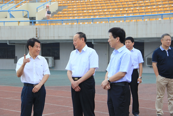 8月19日下午,焦作市市委常委、宣传部长甘茹华一行莅临我校检查指导第十二届河南省运动会志愿者训练工作,校党委书记王少安、副书记周志远陪同视察。