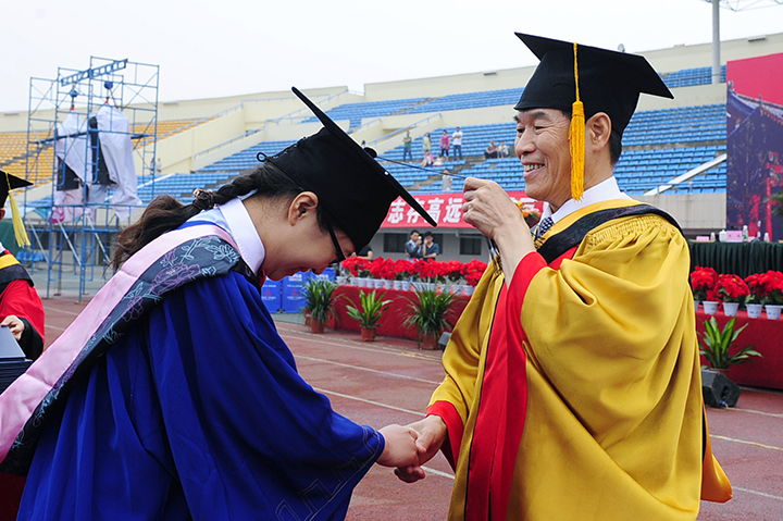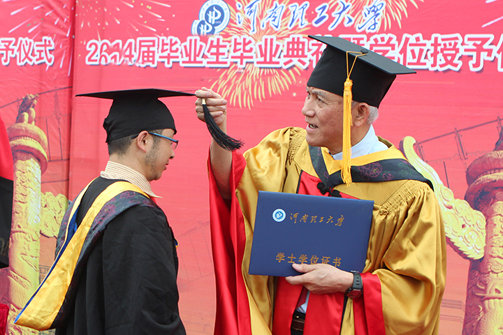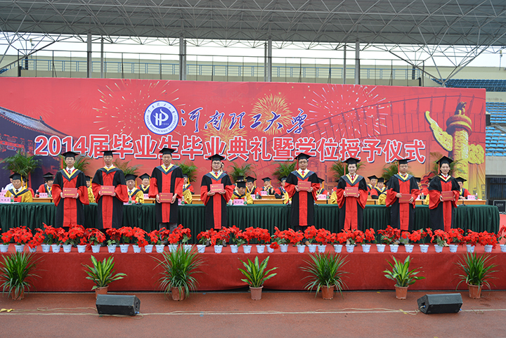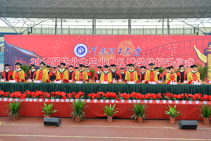 6月20日上午,2014届毕业生毕业典礼暨学位授予仪式在新体育场隆重举行。校党委书记王少安、校长邹友峰,我校教授、美国工程院院士彭赐灯,校党委副书记兼纪委书记张国臣,副校长周英、卫中玲、张锟、景国勋,工会主席杨建堂出席典礼。学校相关职能部门负责人和各学院院长(党委书记)及全校7600余名毕业生参加毕业典礼暨学位授予仪式。毕业典礼暨学位授予仪式由景国勋主持。