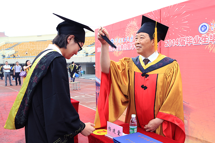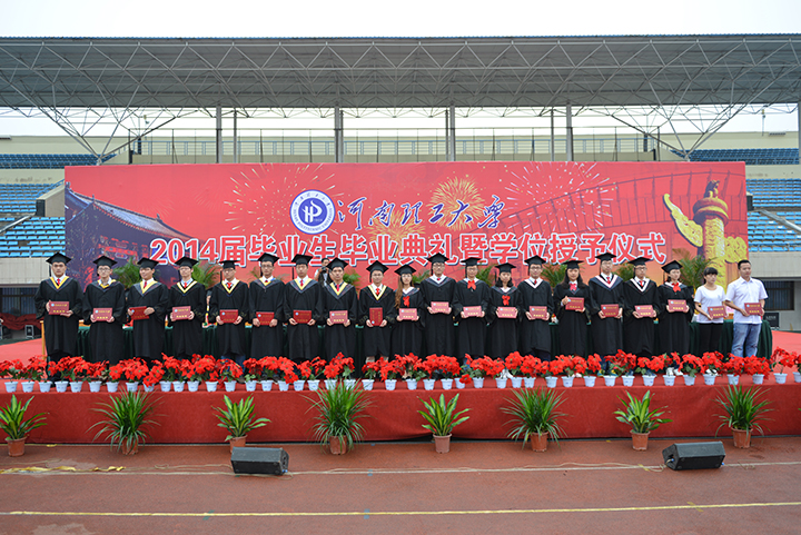 毕业典礼暨学位授予仪式在庄严国歌声中开始。首先,周英、卫中玲、张锟分别宣读了关于颁发2014届毕业生毕业证书的决定,授予2014届毕业生硕士、学士学位证书的决定和关于表彰2014届省级、校级优秀毕业生的决定。校领导为2014届省级、校级优秀毕业生颁发了荣誉证书,为毕业生代表颁发了毕业证书。教师代表、“学生最喜爱教师”、机械学院李长有教授,毕业生代表、建艺学院学生黄杰,家长代表郭玉红女士先后发言,表达了对2014届毕业生的美好祝愿和对学校的感激之情。