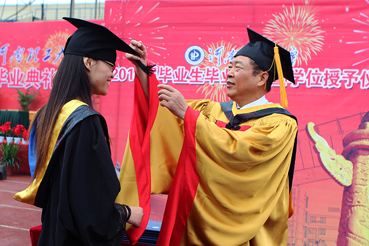 校党委副书记兼纪委书记张国臣为毕业生颁授学位证书