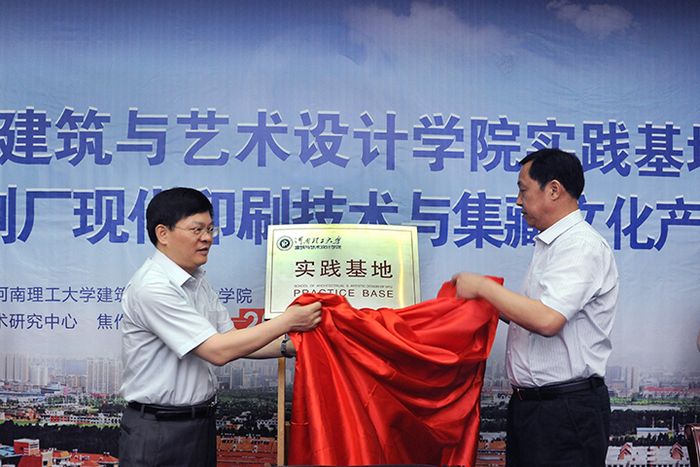 5月27日,建艺学院实践基地揭牌仪式暨河南省邮电印刷厂现代印刷技术与集藏文化产品展在明德楼方形会议室成功举办。校长邹友峰、校工会主席兼视觉艺术研究中心主任杨建堂,河南省邮政公司副总经理庞殿超、河南省包装协会秘书长李武军、焦作市邮政分公司总经理冯涛、河南省邮电印刷厂副厂长李剑等参加本次活动。活动由建艺学院院长陈兴义主持。邹友峰与庞殿超共同为实践基地揭牌。邹友峰为河南省邮电印刷厂副厂长李剑、林裕兴颁发了河南理工大学兼职教授证书。