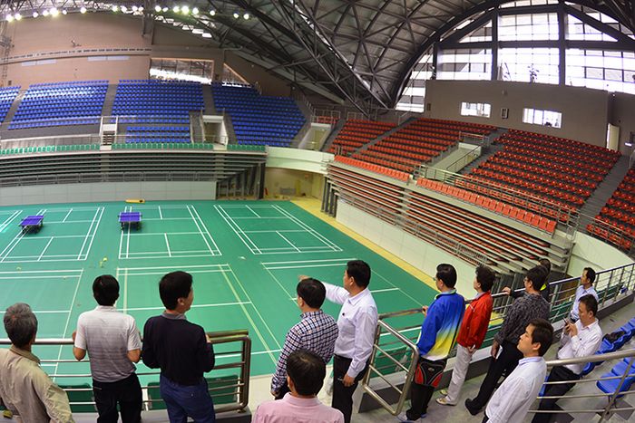 白威凉一行在校领导邹友峰、周志远、卫中玲、张锟陪同下,来到装饰一新的体育馆,视察了乒乓球馆、健美操馆、武术馆、网球馆、篮球馆和室内跑道。在视察过程中,白威凉听取了学校关于体育馆建设的基本情况,室外广场及收尾工程的进度安排,对用于举办省高校“校长杯”第十届乒乓球赛、省第十二届运动会大学生组乒乓球赛的乒乓球馆先进、完备的设施表示肯定。离开体育馆后,白威凉一行还视察了承担运动员食宿的学子餐厅和兰园2号公寓。