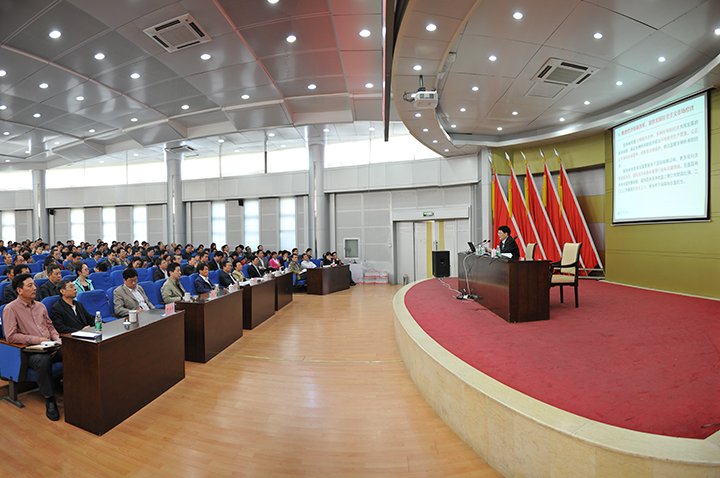 4月4日,校长邹友峰在力行楼学术报告厅为校处级领导干部专题培训班作题为《深入学习贯彻十八届三中全会精神,不断加快特色鲜明高水平大学建设步伐》的党课辅导报告。校领导王少安、张国臣、周志远、卫中玲、张锟、景国勋出席报告会,校泰科资产经营有限公司董事长兼总经理丁安民、全体处级干部和机关职能部门科级干部参加报告会。报告会由校党委副书记兼纪委书记张国臣主持。
