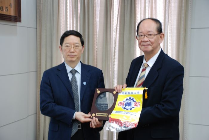 景国勋首先对张绍均一行的参访表示热烈欢迎,随后向明新科技大学一行介绍了我校的历史和办学成就,并重点介绍了我校的办学水平、专业设置、办学特色和学科优势。张绍均也发表了热情洋溢的讲话。他首先对我校的热情接待表示感谢,之后介绍了明新科技大学的办学特色和成就,以及如何促进学生的学习与就业的成功做法。张绍均出生于焦作博爱县,对家乡有深厚感情,十分期待两校之间能开展实质性的交流与合作。双方就教师和学生交流工作进行了座谈。会谈结束后,双方互赠了纪念品。