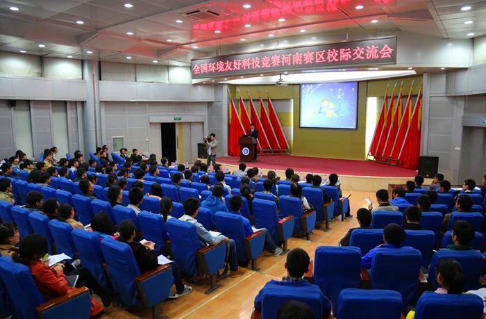 为增强大学生创新意识,提高科技创新能力,3月22日晚,全国环境友好科技竞赛河南赛区校际交流会在我校圆形报告厅举办。来自清华大学、西安建筑科技大学、河南大学、河南科技大学、洛阳理工五所高校的11名学生代表与我校200余名同学进行友好交流。校团委副书记闫俊豪及工程训练中心副主任张英琦等相关职能领导参加了此次交流会。交流会由赛事组委会授权的大学生七星科技创新协会主办。