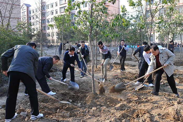 在植树工地现场,参加植树的校领导与大家一起,手持工具,扶树培土,夯实浇水,一株株大叶女贞拔地而立,成为学校环境中新的景色。期间,王少安在接受采访时强调,校园绿化美化是大家的事,人人都要当主人公,共同把学校环境建设的更加宜人。他还要求后勤部门务必严格树木移植工序和质量监管,确保较高的成活率。