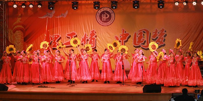 作为学校的一员,老师们由衷地自豪。馨月湖沉淀着求知和理性,文化石上镌刻的“明德任责”、“好学力行”融入理工人的血液,兢兢业业的工作,热情服务的笑脸,正是学校百余年历史的鲜活体现。音乐学院杨丽莉老师深情演唱的《青春百年》,使观众回想起百年校庆:这里燃烧着青春,这里把梦想实现,这里传承着爱心和责任,这里永远是美丽校园。全校教职员工精心培育出的花朵,正在把世界处处装扮。最后,测绘学院书记王晓梅等领导和老师为观众献上了绰约多姿、大气磅礴的舞蹈《和谐中国》,祝愿全校教职员工家庭和合,同事和谐,邻里和睦,身心和美。