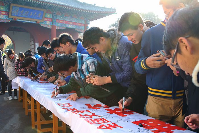 活动结束后,参加活动的领导和师生们在“摒弃交通陋习,安全文明出行”横幅上签名。